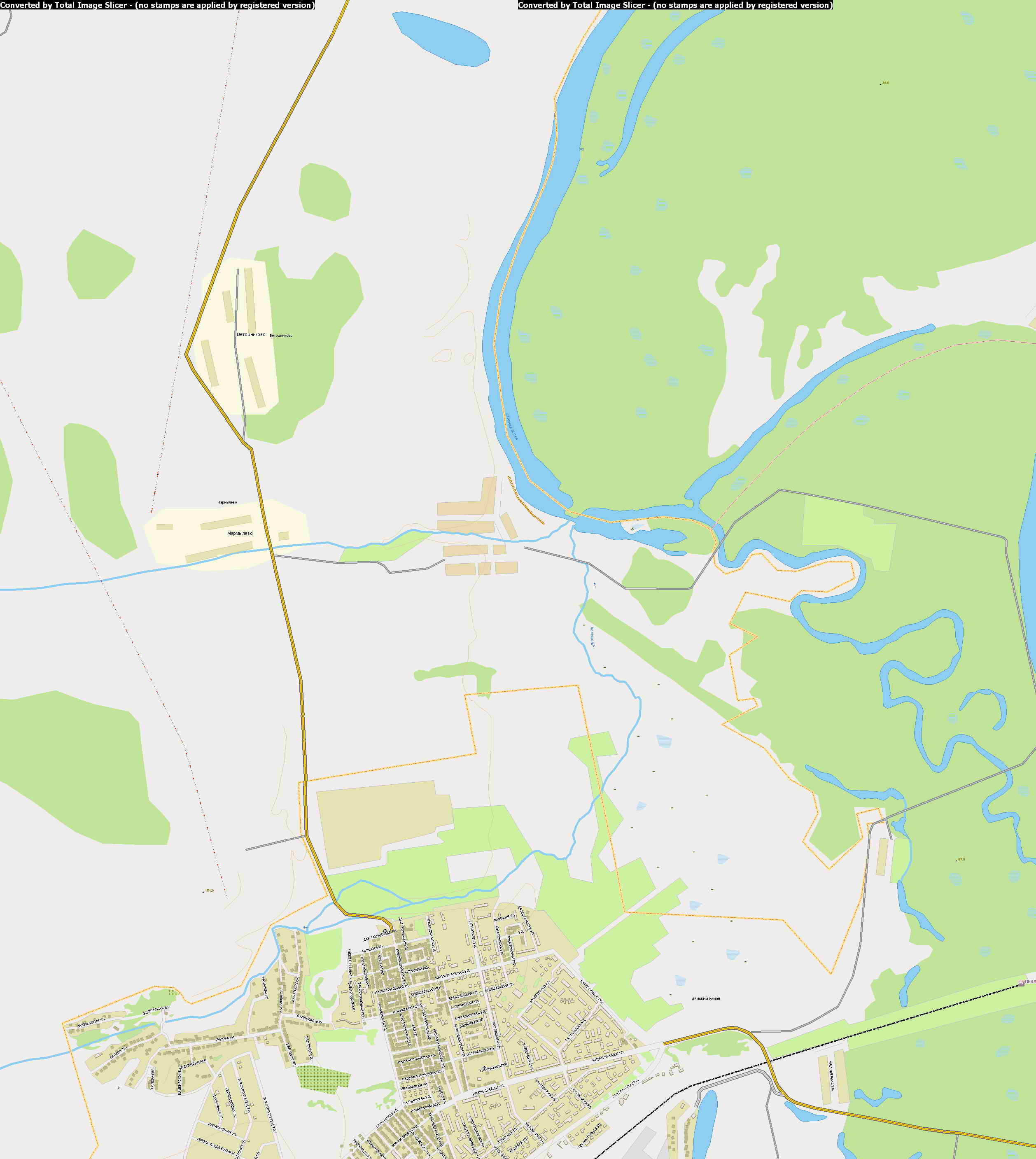 Map of Ufa scale 1cm = 113m. Detailed road map Ufa all the streets and thought. Free download a detailed map of roads of the city of Ufa.
